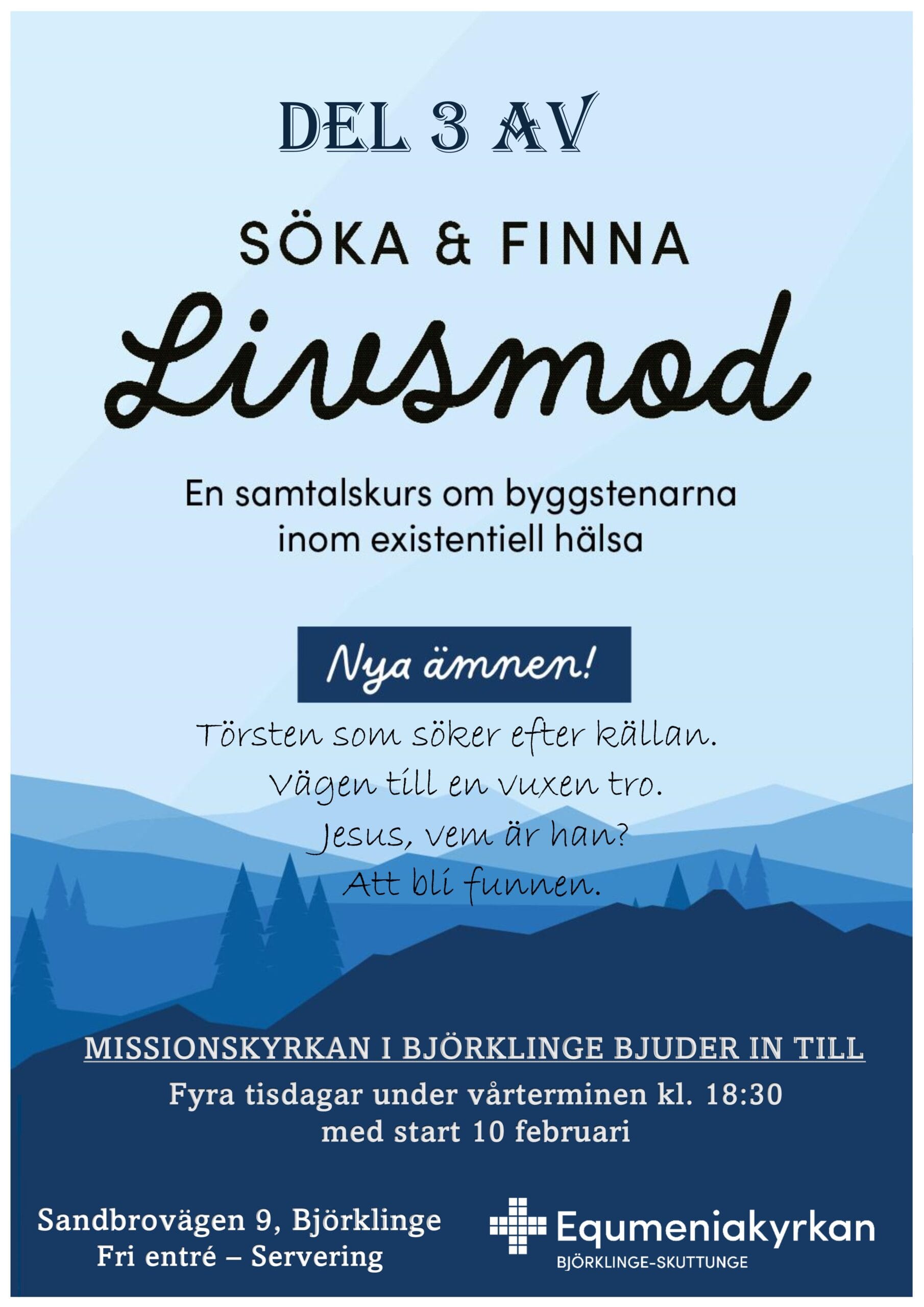 1 evenemang,![]() ![]() ![]() ![]() Välkommen till gudstjänst! Tema: Vägen till livet! Ann-Britt Samuelsson predikar och Anette Asplund leder gudstjänsten. Efter gudstjänsten fortsätter gemenskapen kring kaffeborden |